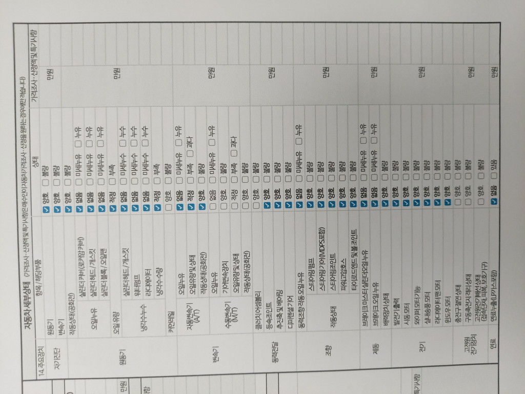 외판부위 | ○ 후드 ○ 프론트 휀더 ○ 도어 ○ 트렁크리드 | ||